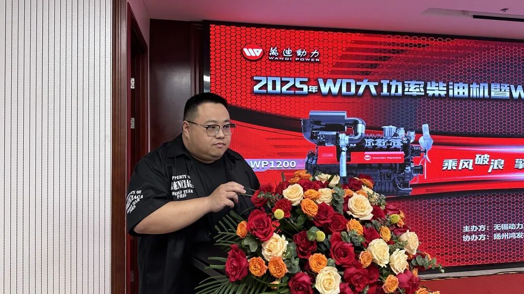 錢董向與會(huì)嘉賓致以熱烈歡迎與誠摯感謝,他強(qiáng)調(diào)WD 系列大功率柴油機(jī)以高效能、低能耗、高可靠性成為市場(chǎng)標(biāo)桿,WP 系列新品則依托 “萬迪動(dòng)力” 高端品牌基因,聚焦智能化、綠色化技術(shù)突破。